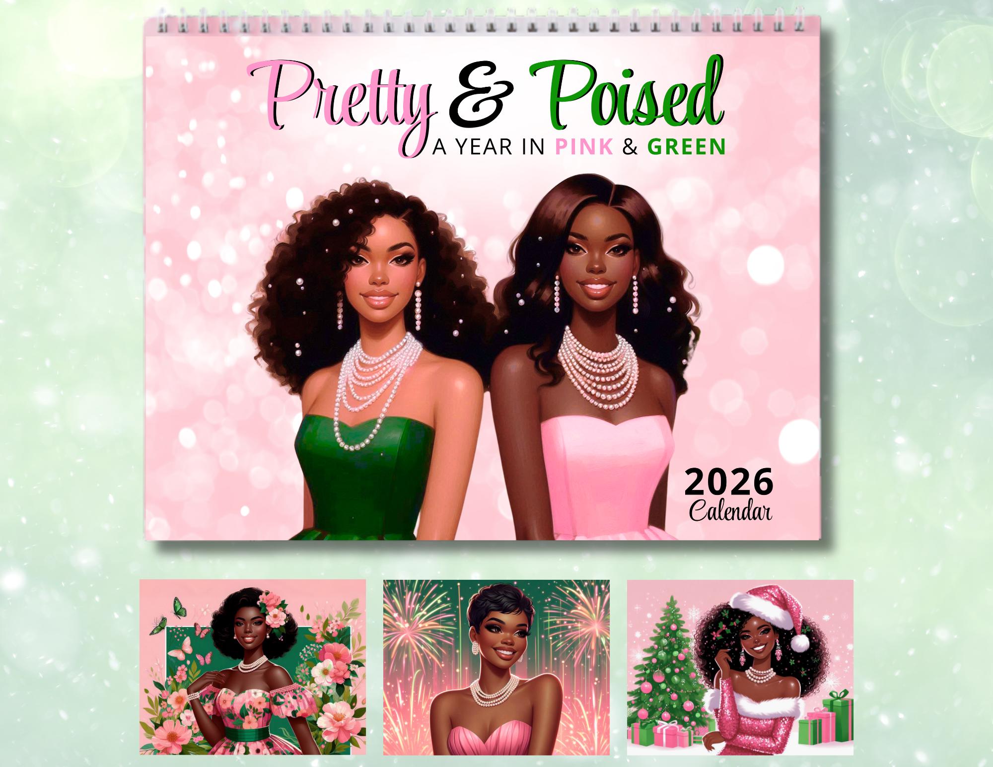 Celebrate every season with elegance, color, and sisterhood. Pretty & Poised: A Year in Pink and Green features twelve breathtaking illustrations of African American women radiating beauty, confidence, and grace in timeless shades of pink and green. Each month captures a moment of luxury and inspiration — from sparkling winter scenes to vibrant summer days — designed to uplift and empower all year long.